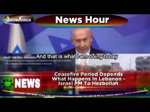 #World News #Benjamin #Gaza #Iran #Israel #Lebanon #Netanyahu #USA ©November 28th, 2024 ®November 28, 2024 9:05 am Israel Prime Minister, Benjamin Netanyahu says the length of ceasefire in the renewed 14 months war with Hezbollah which started on Wednessday depends on what happens in Lebanon. #OsazuwaAkonedo